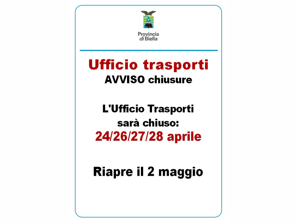 L'ufficio trasporti sarà chiuso per tutta la settimana del 25 aprile.